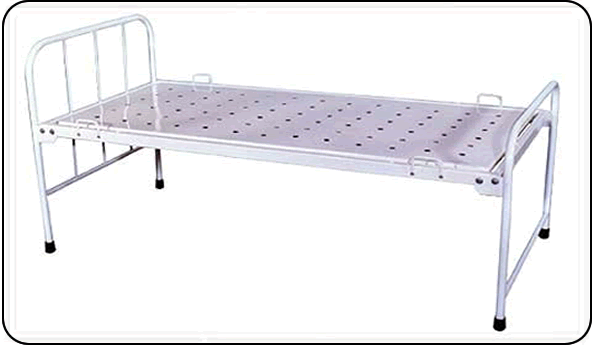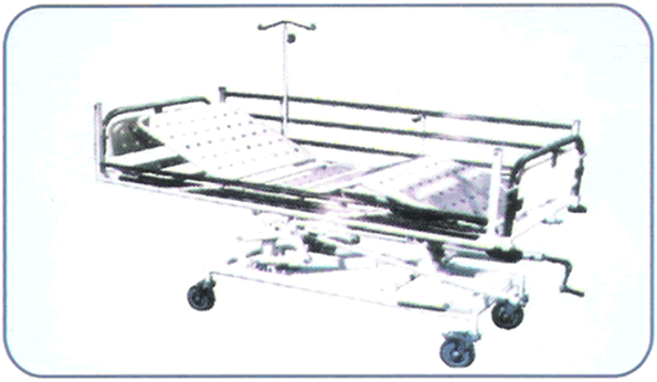 It has four section top of perforated mechanism press bent CRCA sheets. Backrest, kneerest and trendleberg/ reverse trendleberg positions maneuvered by separate screws. To prevent damage to the bed, rubber buffers are provided, which also absorb the shock. S.S. detachable collapsible side railings are provided |