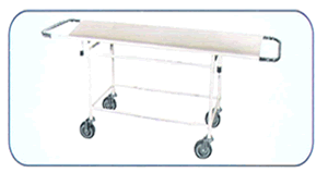Removable Stretcher S.S. Top on four 15 cm dia Swivel Castor, two with brake. Provided with I.V. Rod Epoxy Finish