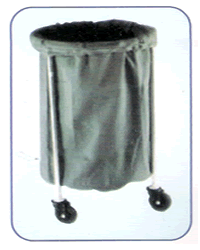 Steel Tubular Frame work mounted on four 5 cm. dia swiveling castors. Supplied with one removable canvas bag.